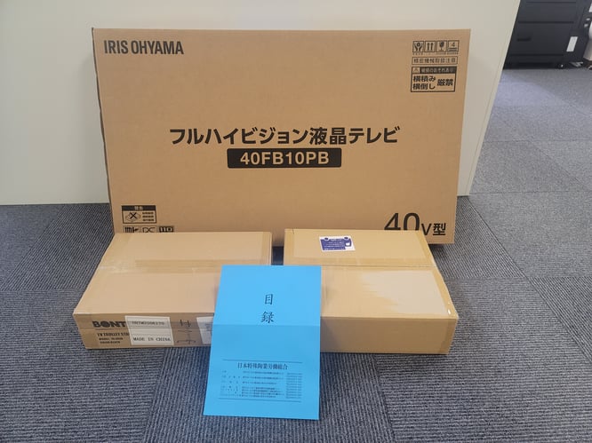 メンバー一同で今必要なものを検討し、ノートパソコン1台、液晶モニター1台、モニター用スタンドをご寄贈いただきました。