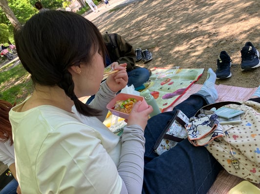 気温が暖かくなり、久しぶりに外で食べるお弁当はとてもおいしかったです。