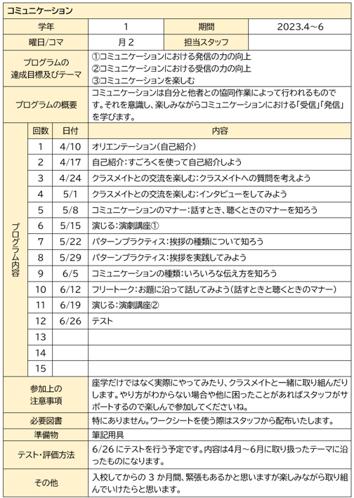 様々なプログラムの中で、今回取り上げるのは「コミュニケーション」!