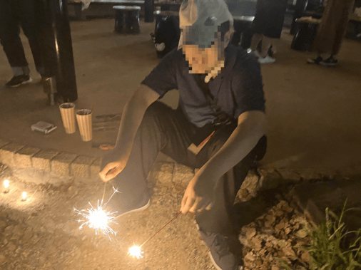 たこ焼きをいっぱい食べておなかがふくらんだら、次は花火!