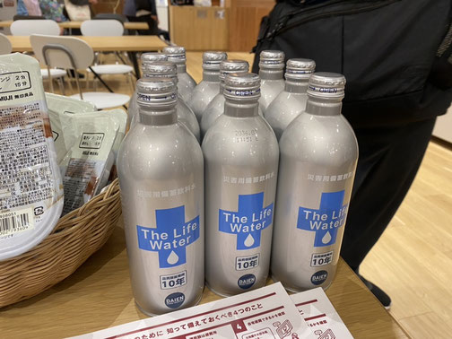 10年間保存できる飲料水や、猫の防災グッズなど、幅広い商品が販売されていました。