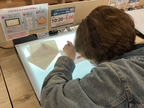 アニメの展示物を見たり、アフレコの体験をしたり、パラパラ漫画作りを体験したりしました。